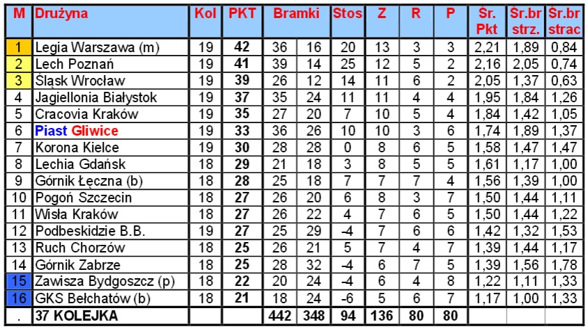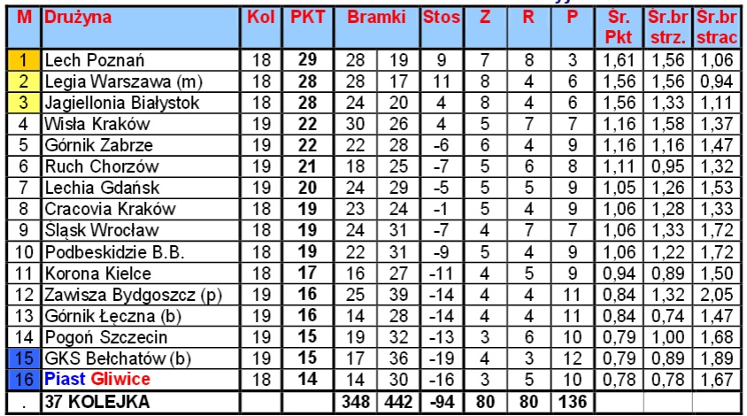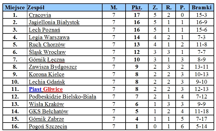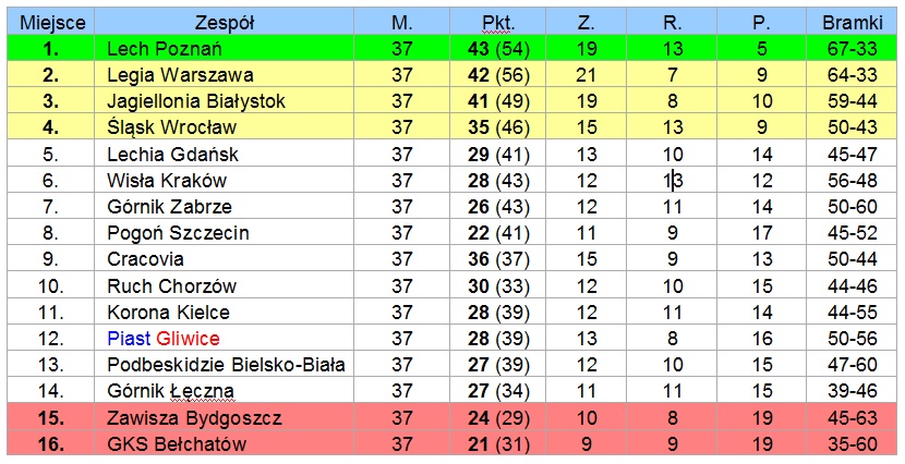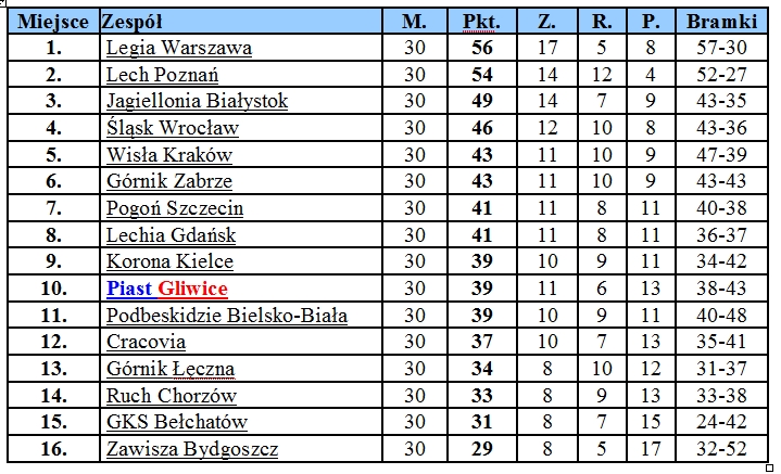 Tabela po 30 kolejkach