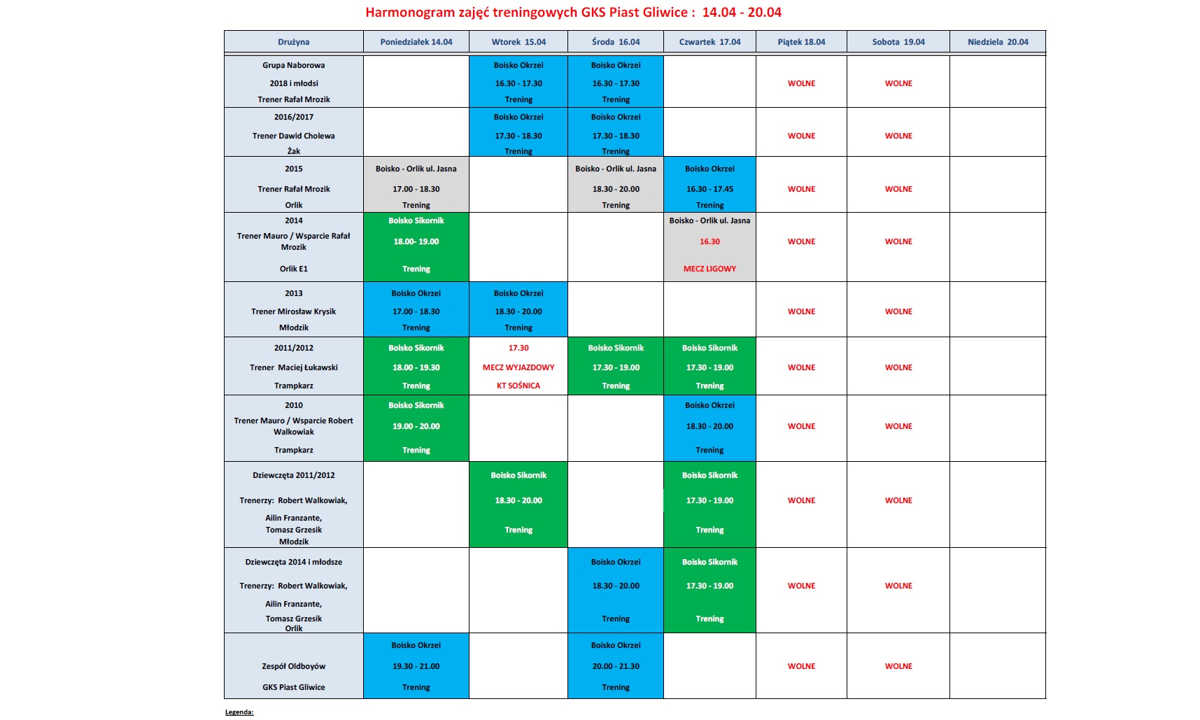 kornik przy Zespole Szkół Ogólnokształcących nr 5 (ul Mewy) oraz na bocznym boisku stadionu przy ul Okrzei. Zapraszamy dzieci i młodzież z roczników 2018-2010 do rozpoczęcia swojej przygody z Piastem. Kontakt do trenerów znajdziecie TUTAJ