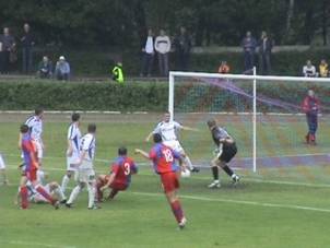 Strzelał Tomasz Pawlak, piłka o centymetry minęła słupek bramki pilnowanej przez Jacka Gorczycę